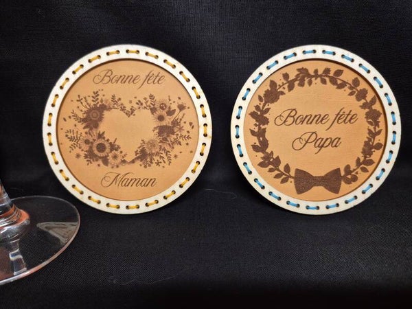 🍷 Dessous de verre en bois et cuir – Fête des mères & fête des pères